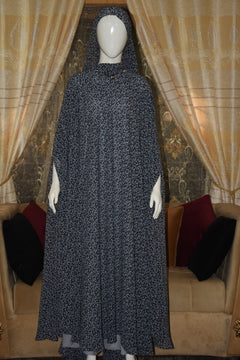 Chiffon butterfly abaya with separate upper and inner gown. Inner gown is simple and outer gown is loose floral design. Comes with veil and scarf